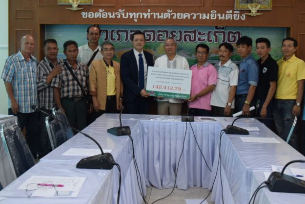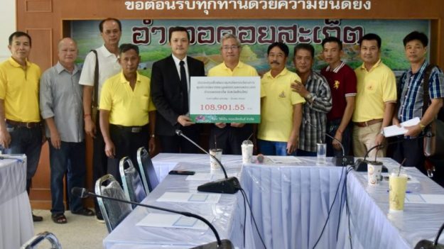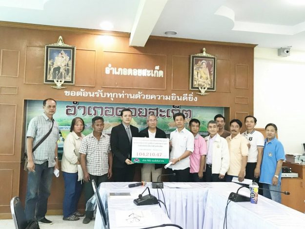ตัวแทน บริษัท แอ็คคอม และ บริษัท วีพีเอ็น คอลเล็คชั่นส์ จำกัด มอบเงินกองทุนเพื่อพัฒนาชุมชนโดยรอบโครงการ ศูนย์จัดการขยะแบบครบวงจร อ.ดอยสะเก็ด 7 แห่ง โดยมีนายอำเภอดอยสะเก็ดเป็นสักขีพยาน ขอให้ทางคณะกรรมการหมู่บ้านหรือชุมชนที่ได้รับมอบเงินนี้ ไปเปิดบัญชีกองทุนกลางคณะกรรมการหมู่บ้าน โดยต่อไปทางเสมียนตราจะเป็นผู้นำเงินที่ได้รับมอบจากทางบริษัทฯโอนเข้าบัญชี ส่วนการใช้จ่ายเงินที่ได้ของแต่ละหมู่บ้านหรือชุมชน ก็ขอให้ไปตกลงหรือไปขอมติในหมู่บ้านชุมชนนั้นๆ ทางโรงงานจะมีการมอบเงินให้กับชุมชนทุกๆ 3 เดือนครั้ง ตลอดระยะเวลาเปิดดำเนินการ ในครั้งแรกนี้มี 7 แห่งที่จะได้รับมอบคืออ.ดอยสะเก็ด เทศบาลตำบลป่าป้อง บ้านป่าตึงน้อยหมู่ 1 ต.ป่าป้อง บ้านป่าไม้แดง ม.2 ต.ป่าป้อง บ้านป่ายางงาม ม.7 ต.ป่าป้อง บ้านทุ่งยาว ม.8 ต.ป่าป้องและบ้านกิ่วแล ม.11 ต.เชิงดอย รวมเป็นเงินทั้งสิ้น 152,144.21 บาท